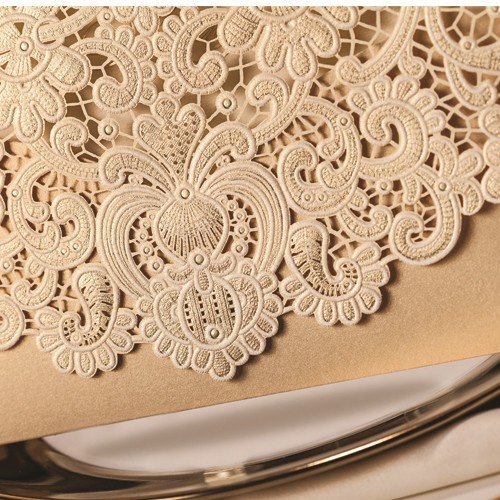 Ce faire-part ciselé découpé au laser motifs arabesques surprendra vos invités par son élégance, son originalité et sa qualité.