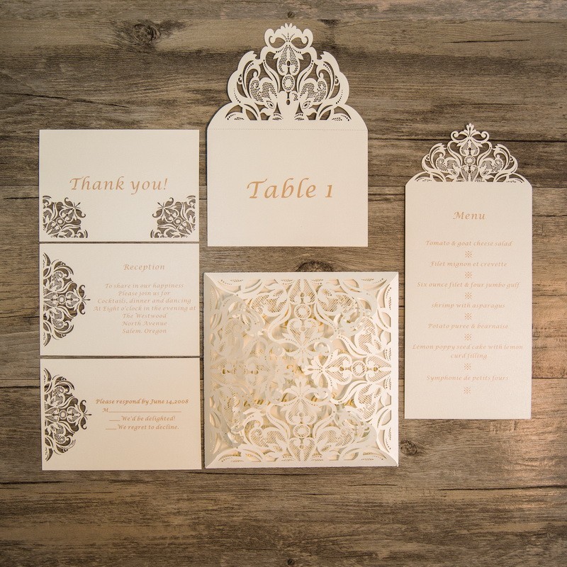 Le faire-part dentelle ciselé découpé au laser surprendra vos invités par son originalité et sa qualité.