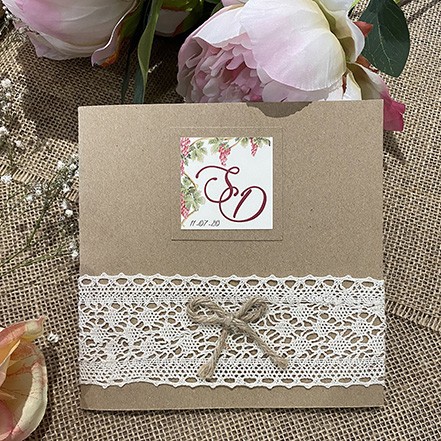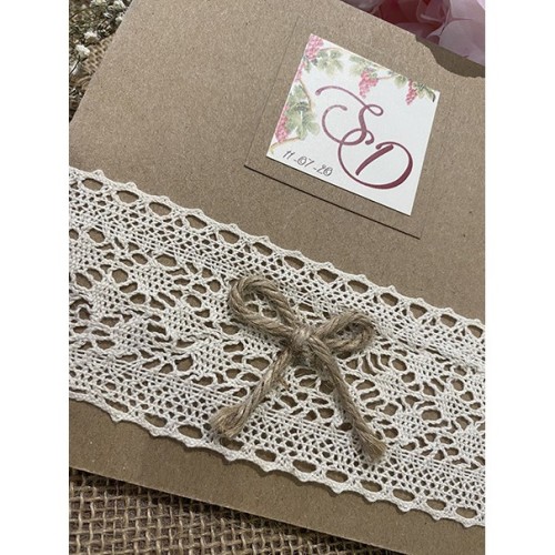 Superbe faire-part thème de la vigne avec dentelle tissu!