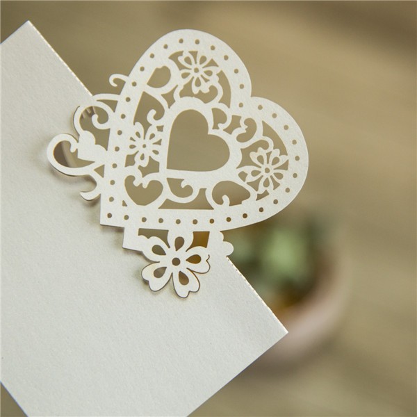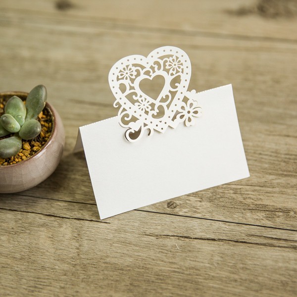 Marque-place avec forme coeur découpée au laser dans un papier cartonné (couleur à choisir dans le nuancier).